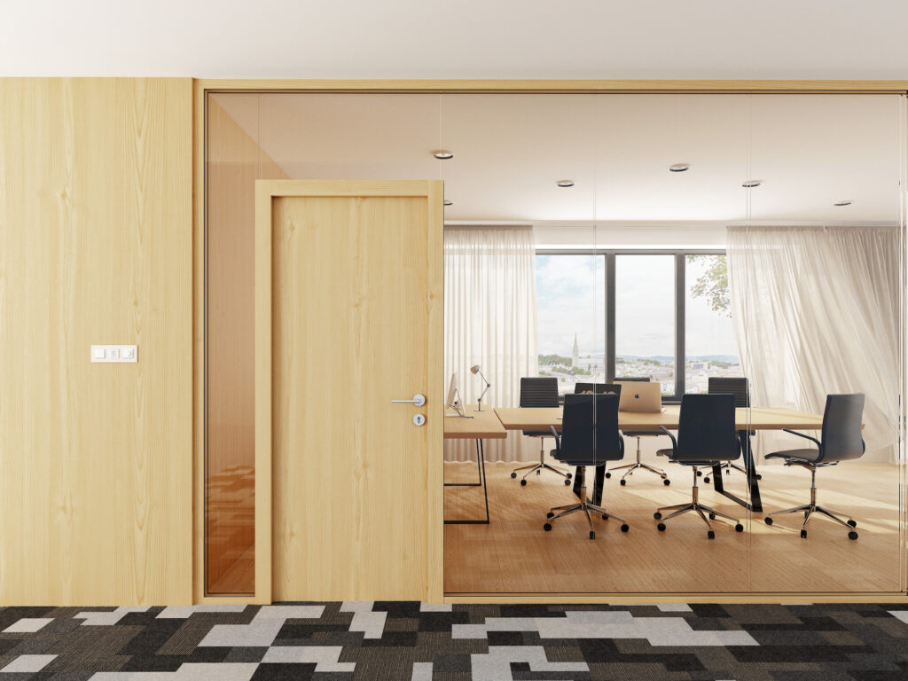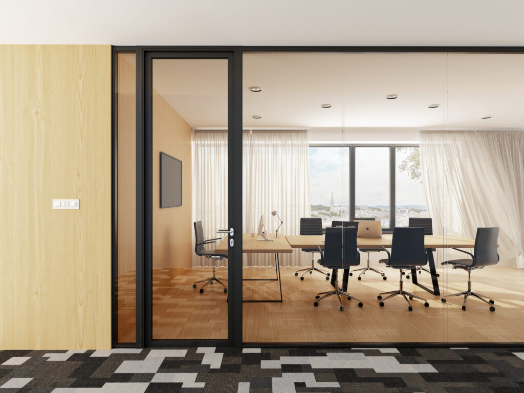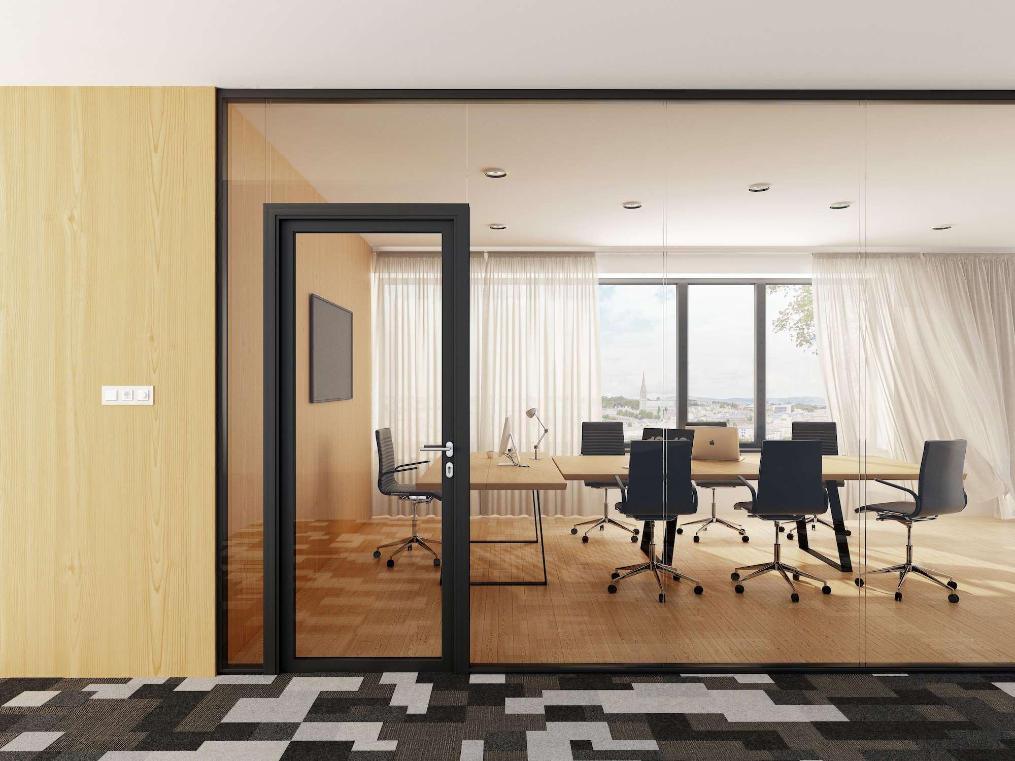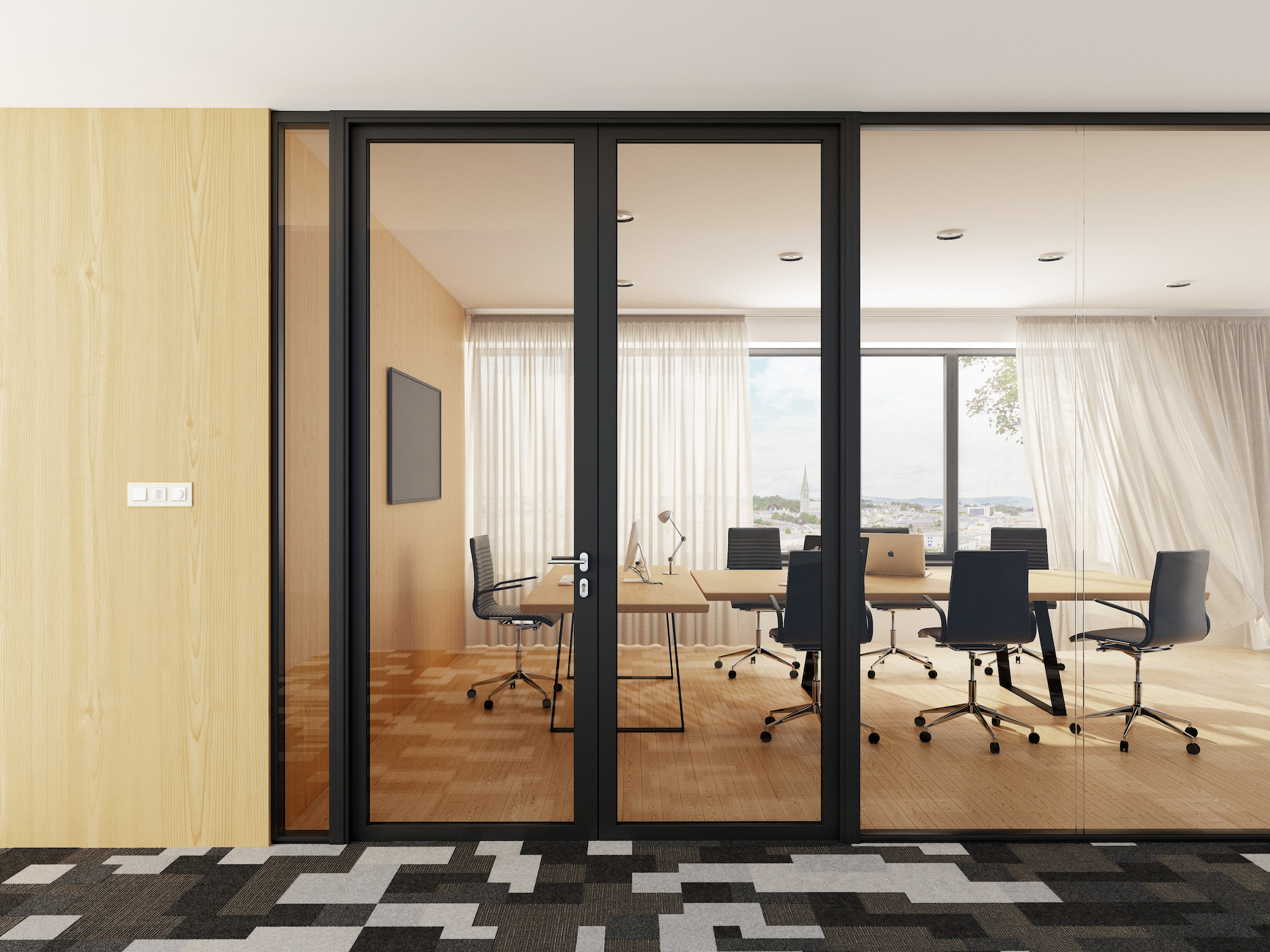 C26Double glazed door with concealed aluminium frame with overlight with columns
