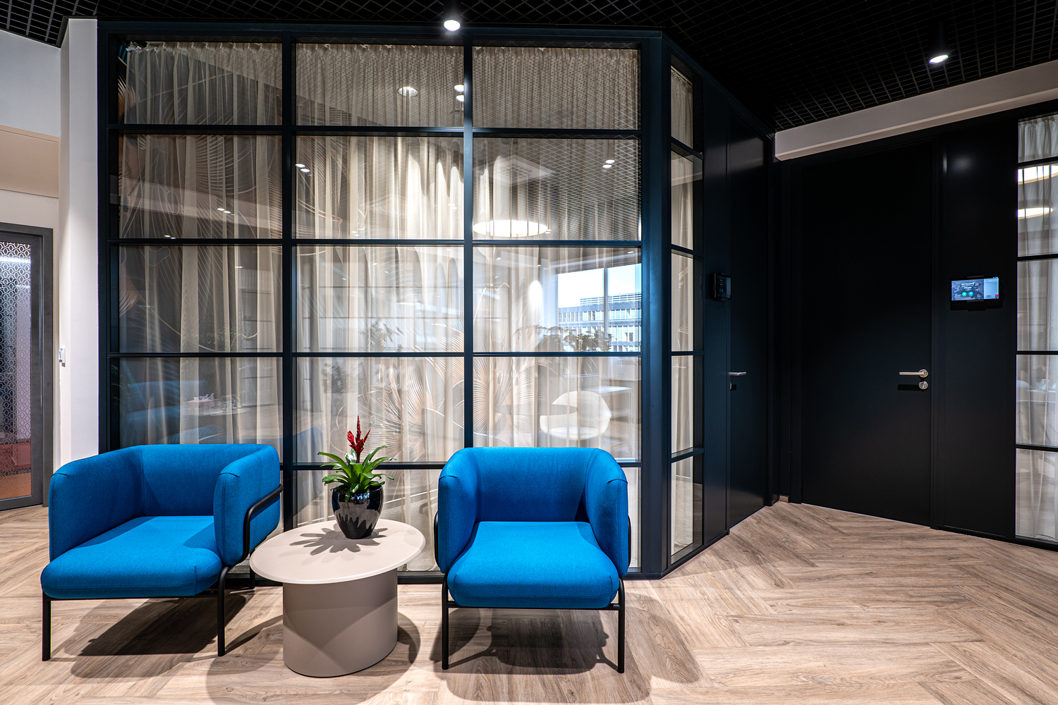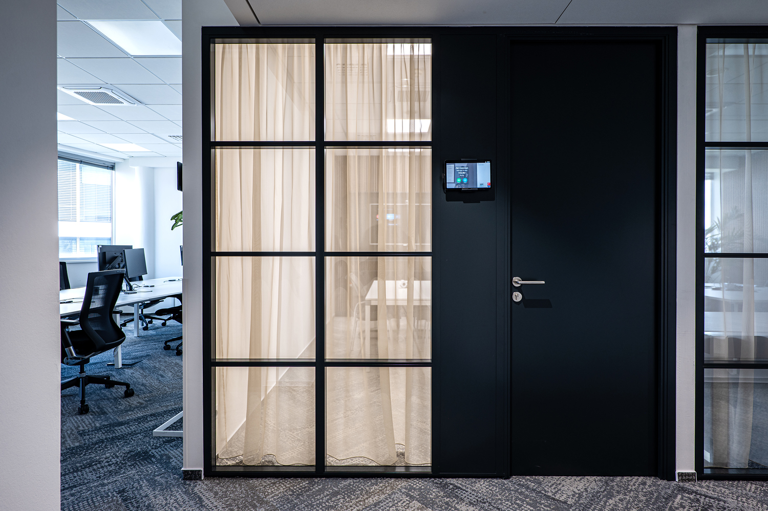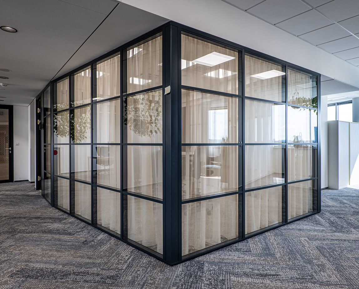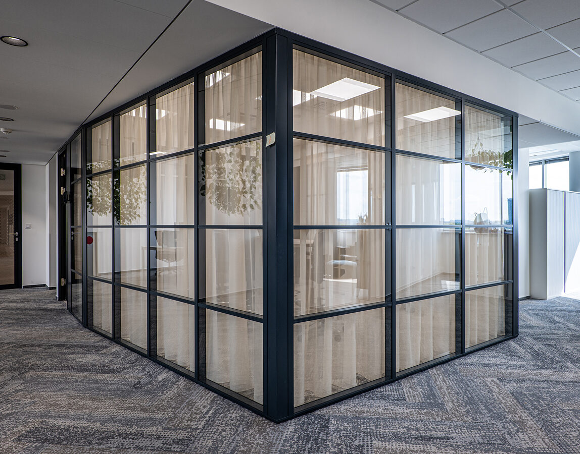 Glass partitions with frames will divide your open space, so you can have both – privacy as well as modern design. Framed partitions VERTI ELEMENT are unique in their versatility. Thanks to the modular assembly system, we can easily adapt the shape and design to individual requirements. The double-glass structure guarantees privacy and proves itself worthy even in the noisiest working environments.