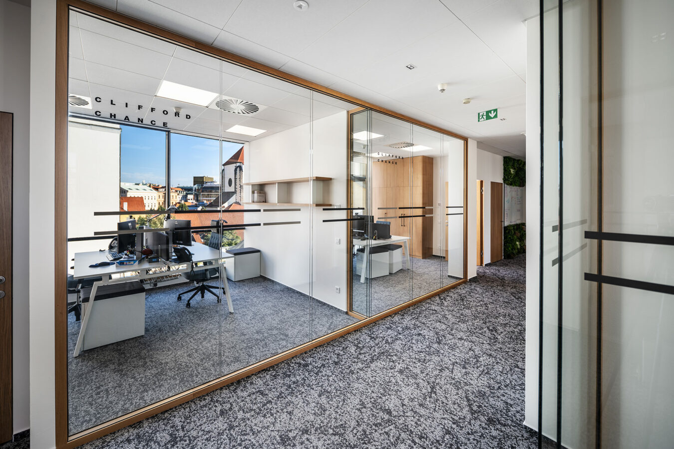 The competitive advantage of partitions with wooden frames lies in their versatility. Thanks to the modular assembly system, we can easily adapt the shape and design to your individual requirements. A single-layer glass wall with a wooden frame playfully divides the space into two separate units, without taking away the airiness of the room. A double-glass interior wall with a wooden profile guarantees privacy and proves itself worthy even in the noisiest working environments.