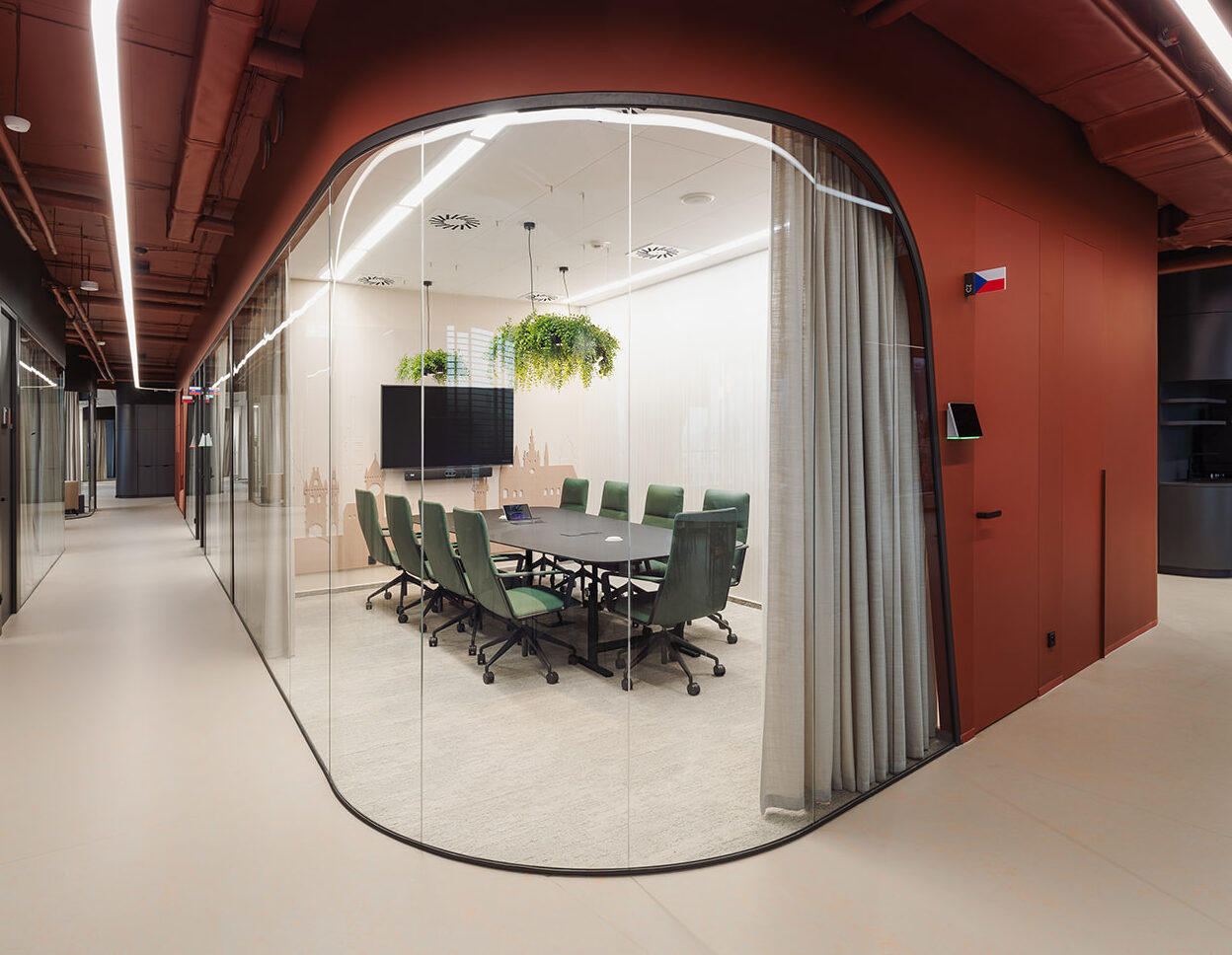 To umožňuje navrhovat prostory, které dýchají, podporují spolupráci a přesto zachovávají jasnou funkční logiku. Zasedací místnosti, projektové týmy, manažerská pracoviště i společné zóny se díky tomu mohou vizuálně propojit, aniž by ztratily svůj účel.